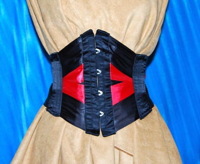 - Victorian proportioned gored corset (below)- this style is for girls with fuller bustlines. A curved cup holds the bust instead of pressing the bust against the chest.